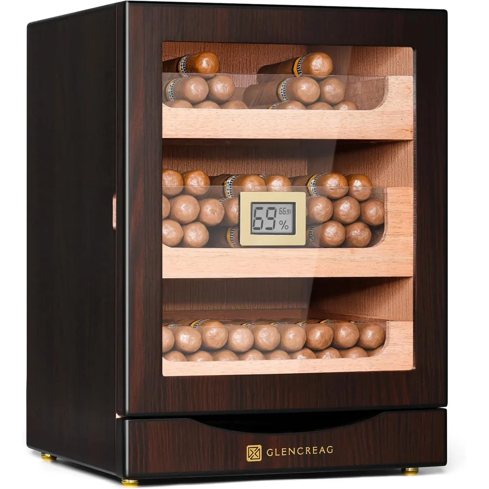 GLENCREAG Cigar Humidor Cabinet with Automatic LED Light, Extra Large Size for 250 Cigars, Spanish Cedar Lining, Tight-Seal Magnetic Door, Adjustable Hygrometer, Gift for Cigar Lover