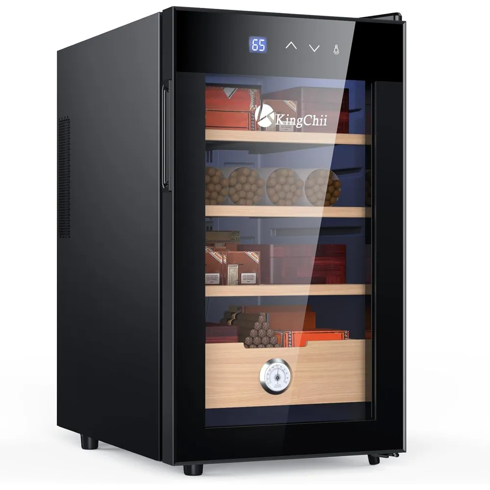 KingChii 48L Cigar Humidor Cabinet Cooling, Heating & Humidity Control System, Humidor Cabinet with Spanish Cedar Wood Shelves & Hygrometer (4 Layers 300 Capacity)