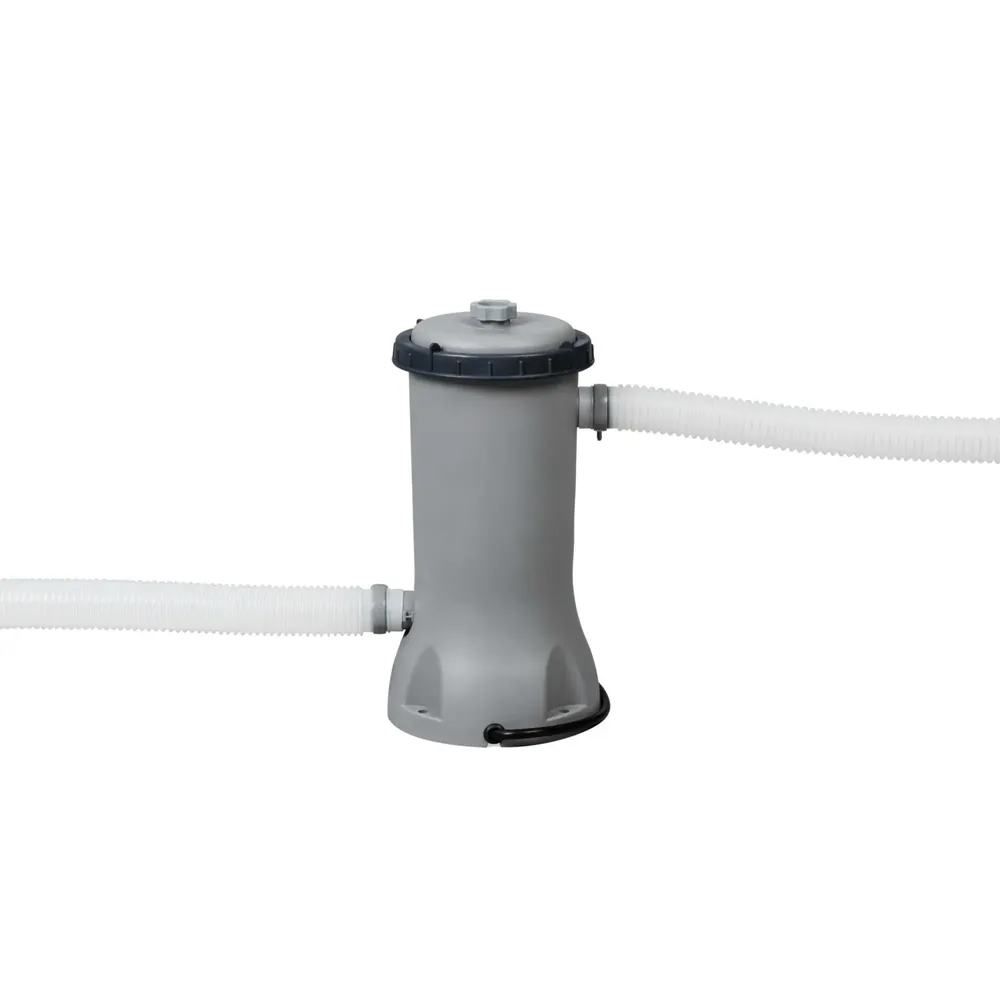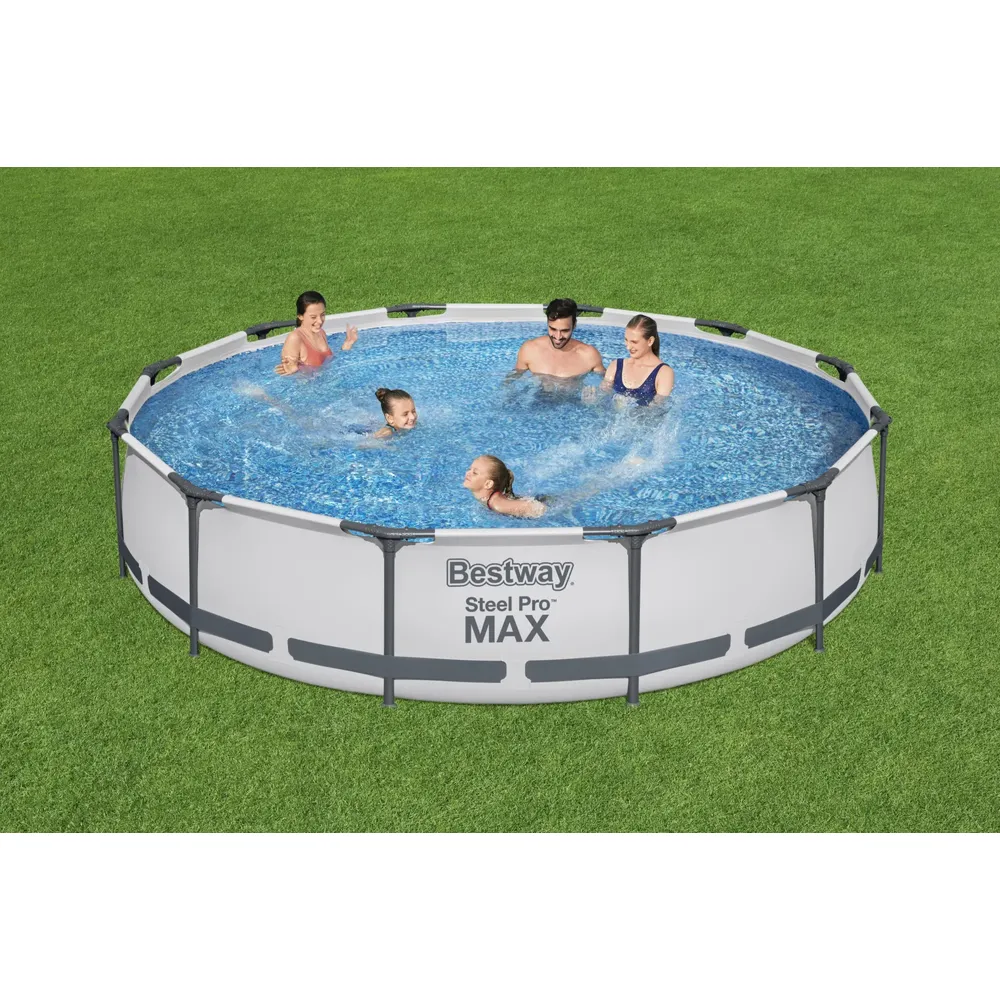 It doesn’t get any better than having your very own pool in your backyard! The Bestway® Steel Pro MAX™ Above Ground Pool offers a durable option at a great price. Durable Construction: The corrosion-resistant steel frame is equipped with our FrameLink System™ for a sturdy and secure frame connection. The protective connectors prevent damage from rust-causing metal-on-metal contact. The sturdy DuraPlus™ liner is made of an ultra-durable, 3-layer material that is reinforced for strength and puncture-resistance. DuraPlus is 15% more tear resistant, 33% more stretch resistant and 83% more puncture resistant than standard PVC, ensuring your pool will last summer after summer. Additional Features: This above ground pool set also comes stocked with a 530 gal. (2,006 L) filter pump to keep the pool water looking crystal clear. Plus, this pool is very simple to set up and to take down for off-season storage. No tools are required, and a hose connects to the built-in flow control valve to quickly and easily drain away pool water when you are ready to take it back down.