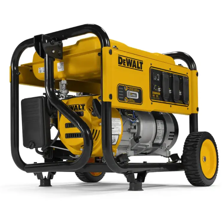 The DEWALT DXGNR8000E is designed with the professional in mind. The generator is powered by a premium 420cc DEWALT electric start engine with low oil shut off which protects the engine from damage. The Idle control conserves fuel and reduces noise on the job site. The generator provides feedback to the user with its Smart runtime meter showing how much runtime is left based on fuel consumption. Equipped with GFCI protected outlets for job site compliance and safety. The wattage meter gives instant feedback on how much power is being used. Never flat durable wheels, for maximum portability and durability. The 7.5 Gal. steel fuel tank provides 11-hours of runtime at 50% load. The steel frame is job site tested.