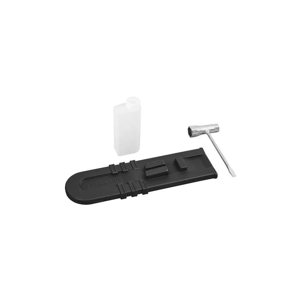 Included accessories: protective cover, combination tool, 500 ml fuel mixing bottle
