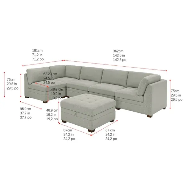 Thomasville Tisdale Modular Sectional 6-piece Boucle with Storage Ottoman quantity