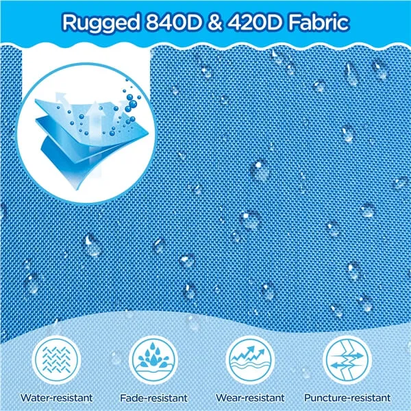 • 【Sturdy Materials & Reinforced Details】This bounce house with slide is made of wear-resistant 420D PVC-coated polyester fabric to withstand the elements. The high-stress areas, like the sliding and bouncing surfaces, are reinforced with hard-wearing 840D fabric and double to triple-stitched seams for enhanced safety and strength.
