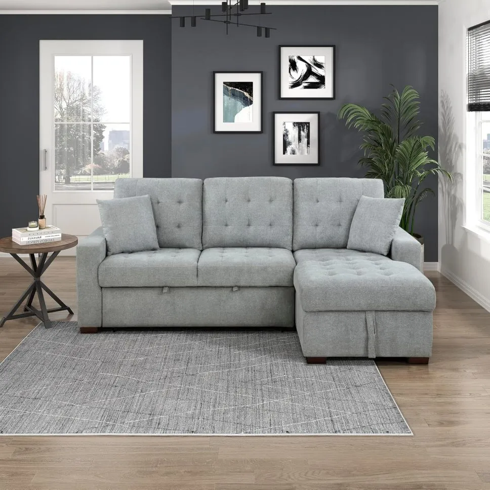 Sleeper Sofa, L Shape Sectional Couch with Right Storage Chaise and Pull Out Sofa Bed, Grey