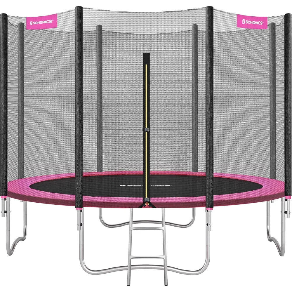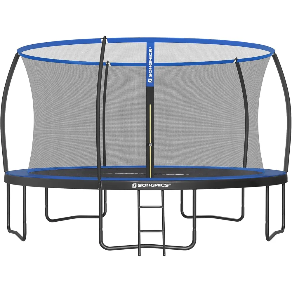 SONGMICS Trampolin Outdoor Ø 366cm. rundes Gartentrampolin mit Randabdeckung. mit Sicherheitsnetz. mit Leiter und gepolsterten Stangen